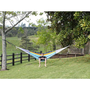 A very popular, practical and environmentally tree-friendly way of hanging your hammock from a tree or post. Saves the need for screw-in hooks and is easily set up and taken down.