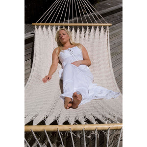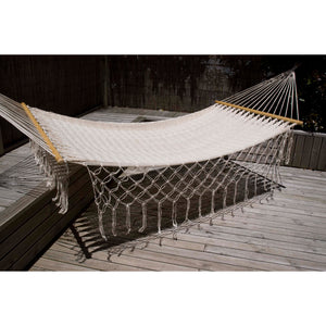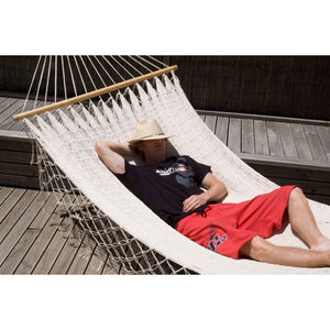 The hammock body is woven from soft cotton cord in a unique diamond-weave pattern that provides the greatest comfort and support. Perfect weight distribution is achieved throughout the hammock and the open weave pattern further enhances comfort by allowing air to gently circulate around your body, ideal for those extra warm days.
