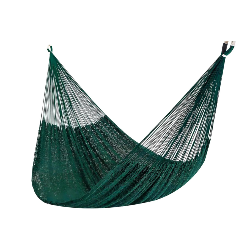 The perfect hammock for your outdoor area, with the forest green colour complementing the surrounding garden. Enjoy blissful hammock relaxation in this traditionally handwoven Mexican hammock in thick cotton cord. An amazing level of comfort is achieved through the interwoven cords, providing maximum support and air circulation.