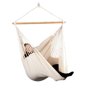 Colombian Made from 100% certified organic cotton in natural non-dyed nor bleached white cotton. Easy to get in and out of and sized for a single user to enjoy in a seated or reclined position