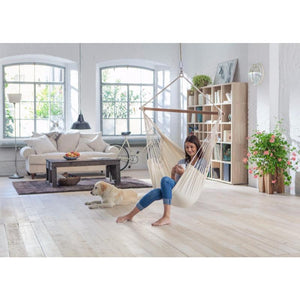 Whether to gently ease into your day with a cup of coffee or end it with a nice wine you'll quickly find yourself in a relaxed frame of mind whilst in this high-quality organic cotton hammock chair.